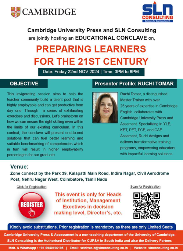Cambridge University Press and SLN Consulting are jointly hosting an Educational Conclave on, Preparing Learners for the 21st Century